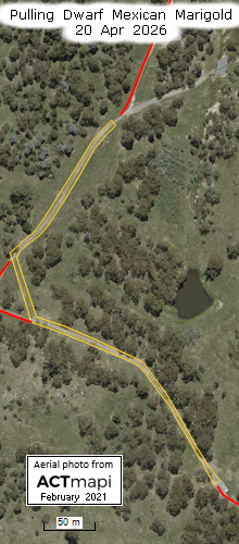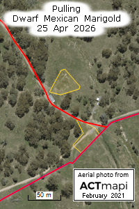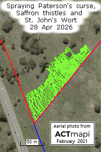 Some Saffron thistles, Hoary mustard and other weeds also grubbed |
