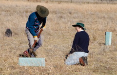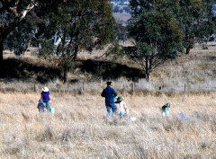 fotpin's final community event for Autumn was a planting day, attended by nearly 30 people who planted just short of 300 tubestock on a beautiful Canberra Autumn morning. This planting was in an area of the North Kama property chosen to help form a bridge for wildlife between the Pinnacle Nature Reserve and the Kama Nature Reserve (see the location map).