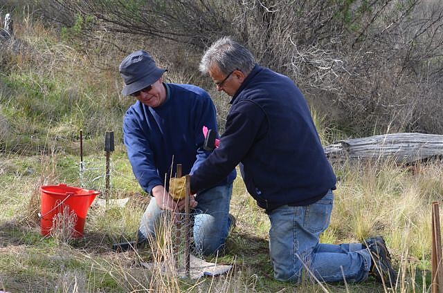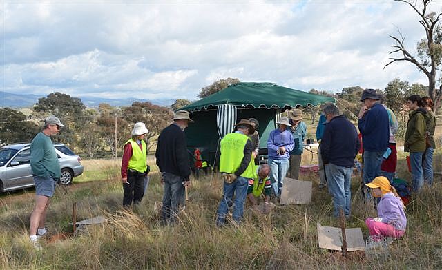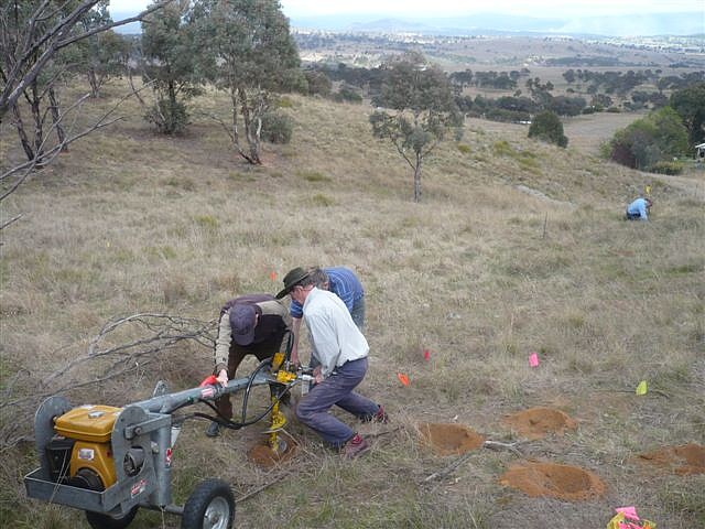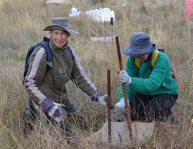 Following months of preparation, advice from Greening Australia and with a grant for planting projects from Spicers Paper through Landcare Australia, the first planting day of the fotpin was held on 9th October 2011. Aimed at filling gaps in the existing woodland, this planting was a small-scale pilot project of 218 trees to gain some experience. A total of 22 fotpins and families turned out on the day to put the planning into action, making it a successful event.