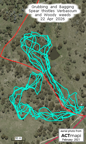 Some Saffron thistles, Hoary mustard and other weeds also grubbed |